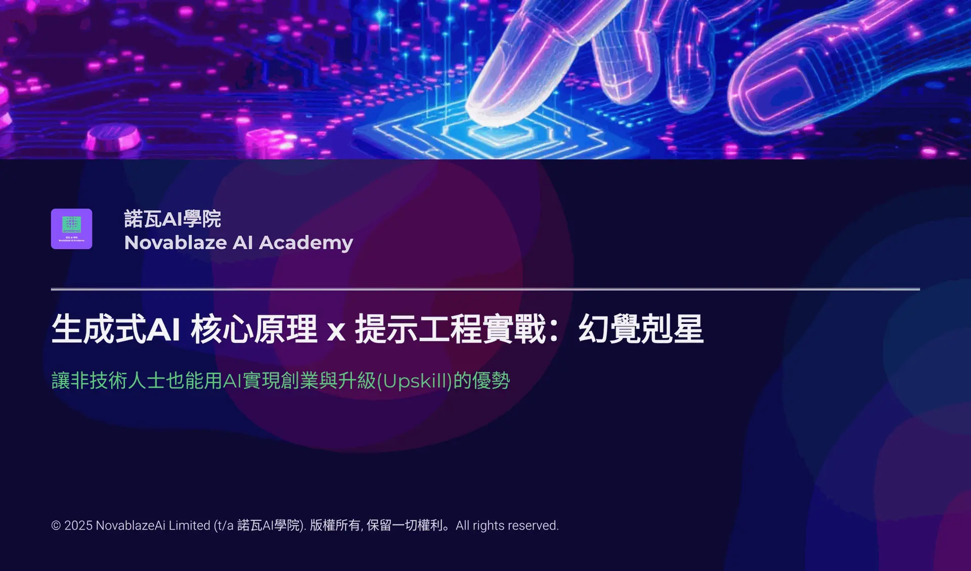 5. 修業證書(Certificate of Completion): 完成整個課程,將由 諾瓦 AI 學院 頒發《修業證書》。